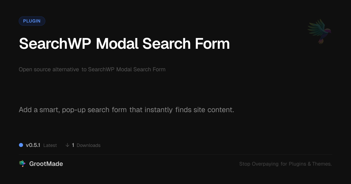 GrootMade is not affiliated with SearchWP Modal Search Form and provides an open-source alternative.
