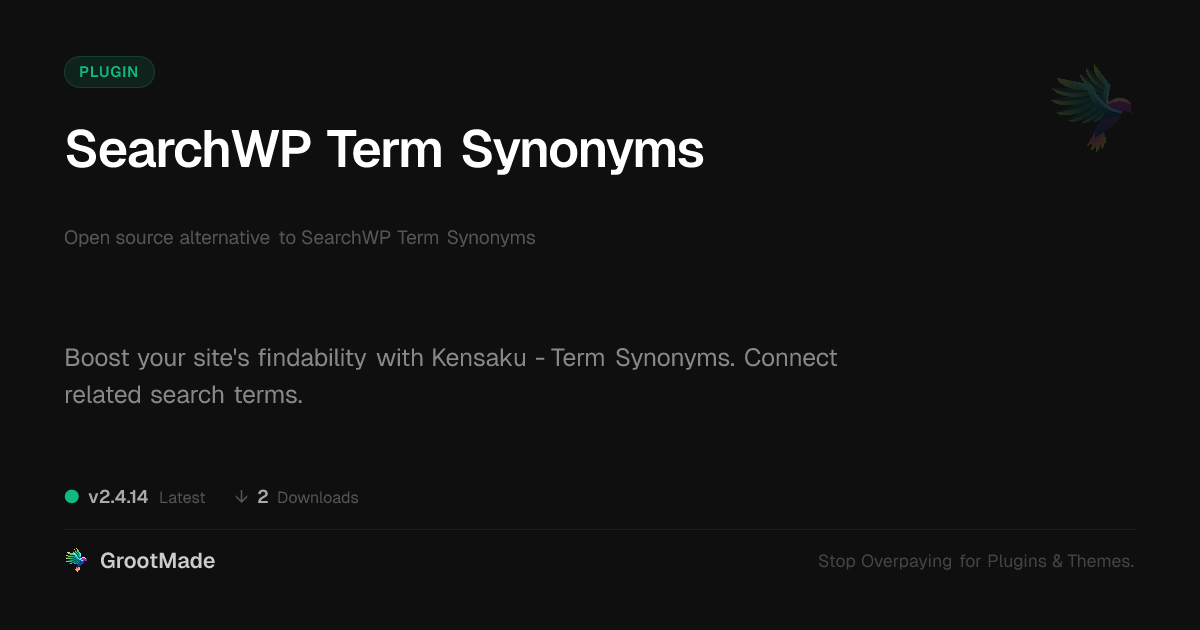 | Tags | content discovery, WP search, search optimization, content-discoverability, seo, related term search, synonym search, term linking, search enhancement, Search, Terms, Searchwp, Synonyms, Keyword Matching, Search Improvement, profile tab builder, user contact form |