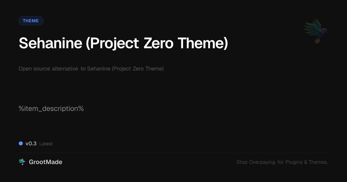 GrootMade is not affiliated with Sehanine (Project Zero Theme) and provides an open-source alternative.