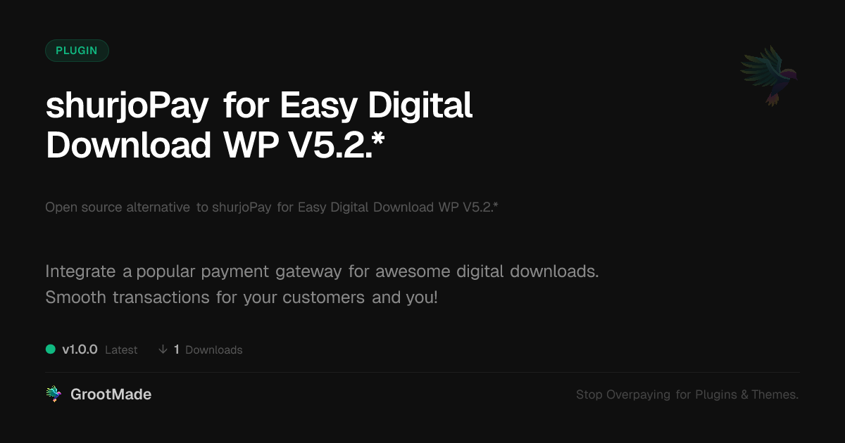 | Forked from | shurjoPay for Easy Digital Download WP V5.2.* |