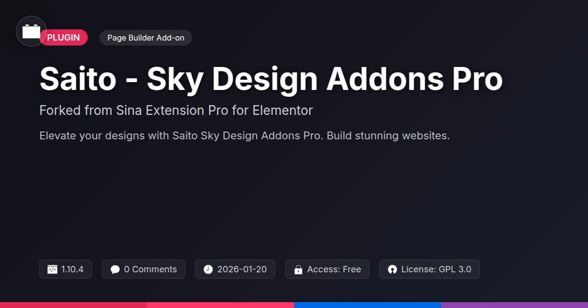 Tags web design tools, customization, page builder addons, developer, elementor extensions, customizer, WP community tools, infinite scroll plugin, site creator, Design, Widgets, Pro, Layout, Themes, Ui, Addons, Elements, Styling, open source plugins, download integration, online community safety, Ux, responsive, user contact form, member communication plugin
