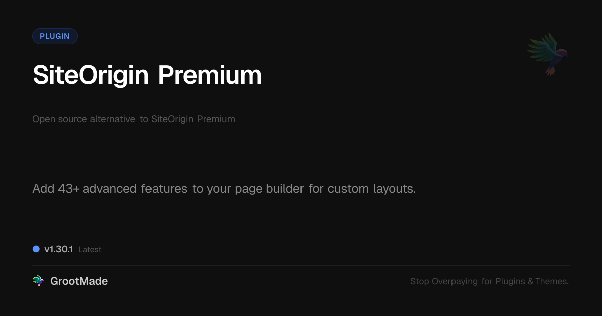 GrootMade is not affiliated with SiteOrigin Premium and provides an open-source alternative.