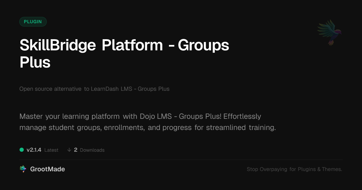 | Tags | Membership, online courses, course management, learning platform add-on, lms group management, online course groups, student group enrollment, team training software, education, training, user groups, customizable site builder, template builder add-on, whiteboard animation plugin, shop filters, Groups, Learndash, Lms, E Learning, profile tab builder, user contact form |