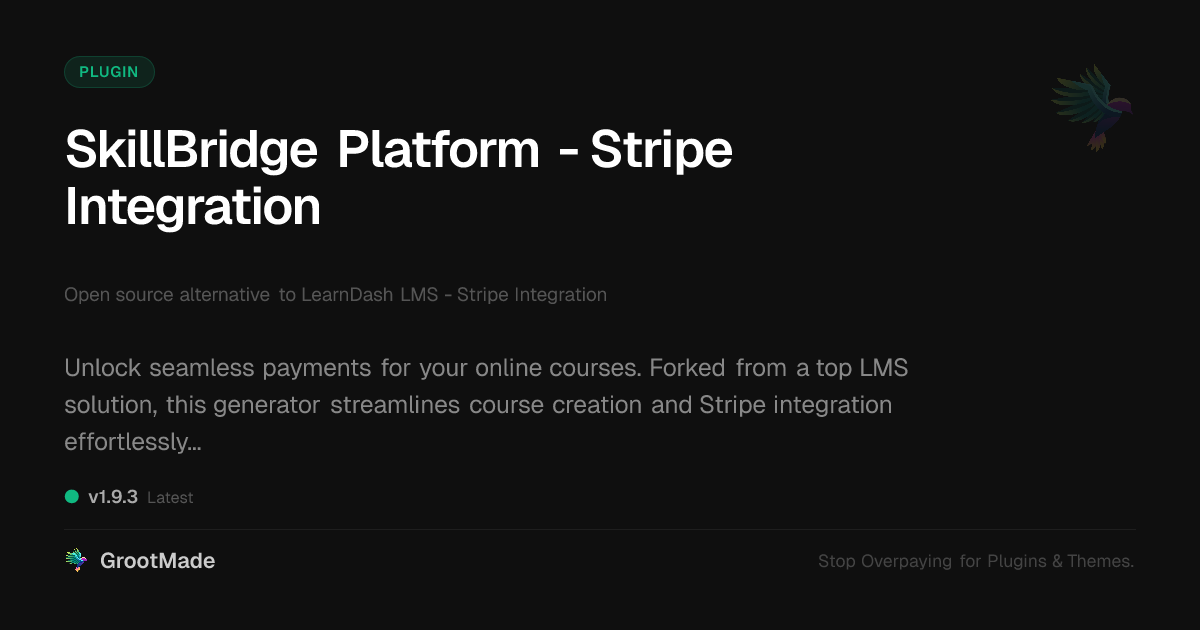 | Tags | Subscriptions, Membership, online courses, online course creator, lms integration, course creation tool, developer friendly LMS, template builder add-on, whiteboard animation plugin, shop filters, post management tool, Stripe, Learndash, Lms, E Learning, Course Payments, Credit Card Payments, stripe payment gateway, Payment Gateway, profile tab builder, user role visibility, user contact form |