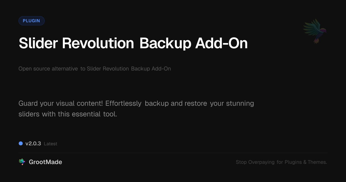 GrootMade is not affiliated with Slider Revolution Backup Add-On and provides an open-source alternative.