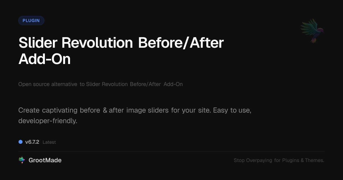GrootMade is not affiliated with Slider Revolution Before/After Add-On and provides an open-source alternative.