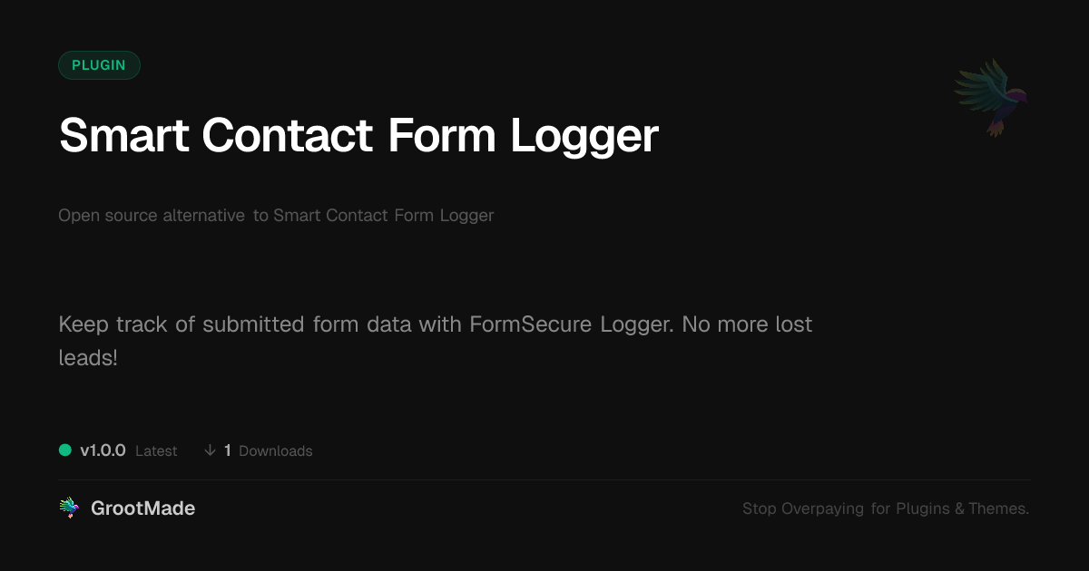 | Tags | contact form plugin, form security, lead capture tool, form submission logger, data protection, form submission, form logging, e-commerce bidding, Security, Logging, Audit Trail, open source plugins, wp plugin, plugin, Digital Downloads, pagination addon, profile tab builder, User Input, user role visibility, user contact form |