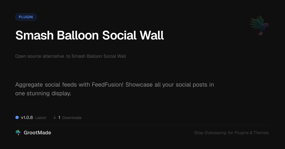 GrootMade is not affiliated with Smash Balloon Social Wall and provides an open-source alternative.