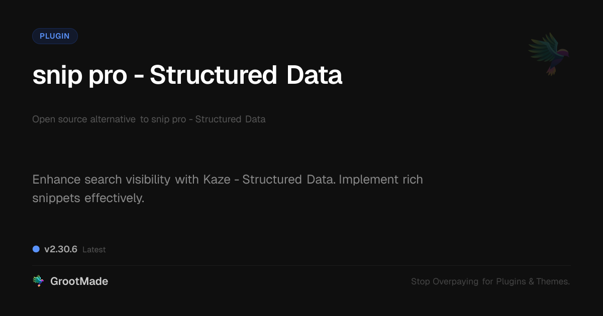 GrootMade is not affiliated with snip pro - Structured Data and provides an open-source alternative.