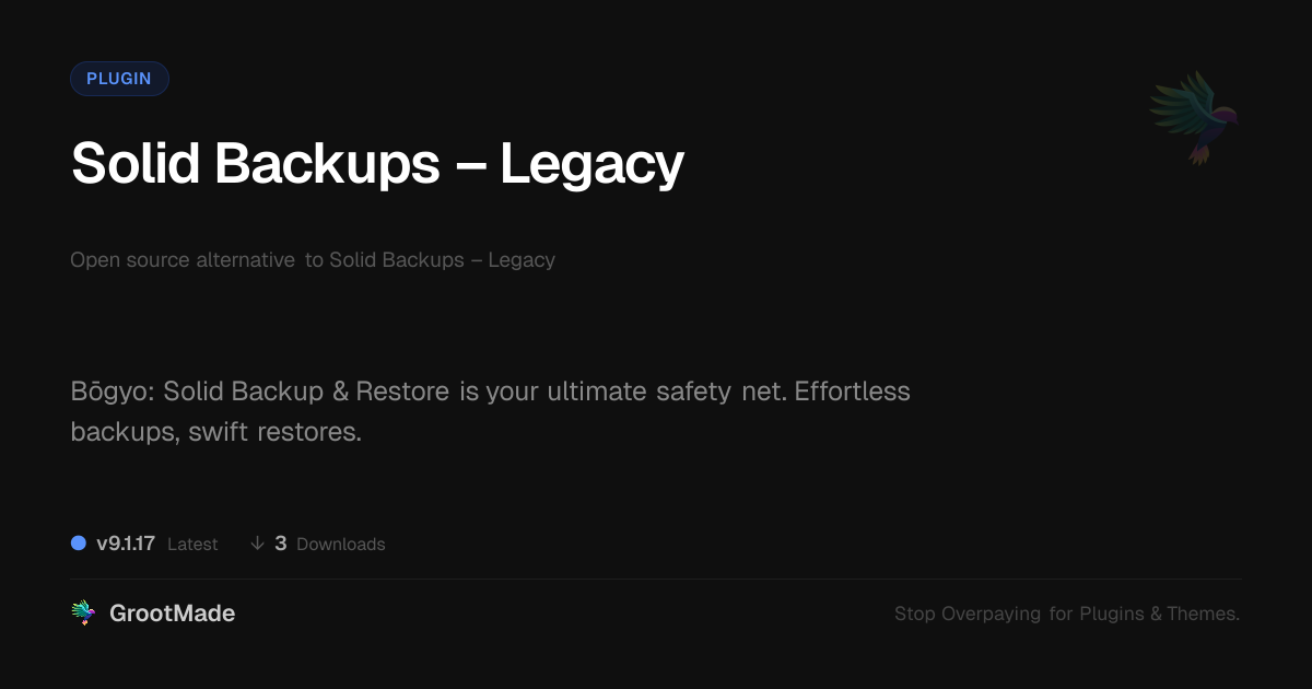 GrootMade is not affiliated with Solid Backups – Legacy and provides an open-source alternative.