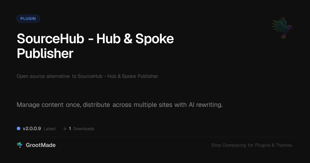 GrootMade is not affiliated with SourceHub - Hub & Spoke Publisher and provides an open-source alternative.