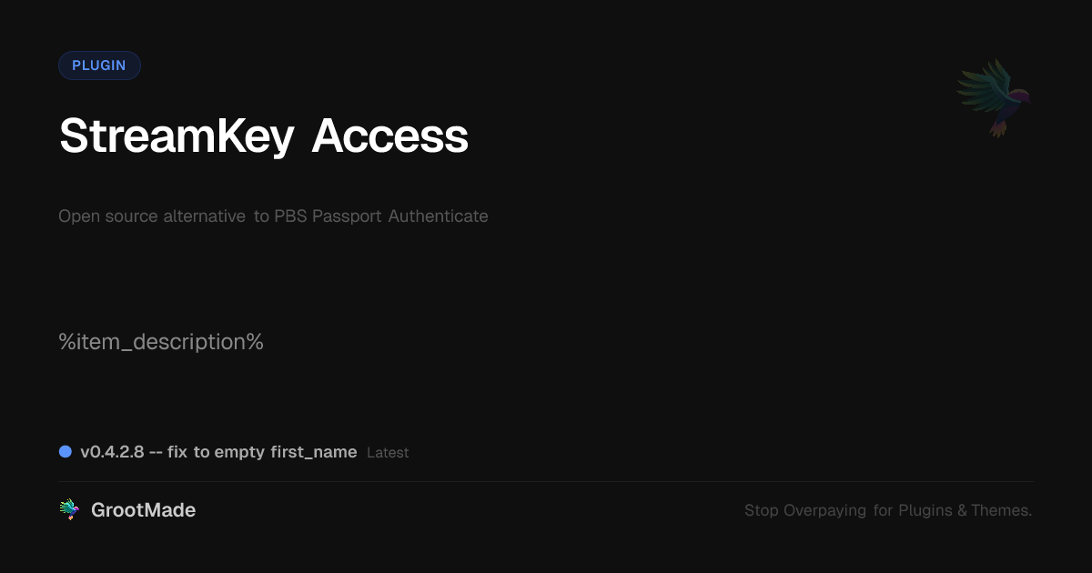 GrootMade is not affiliated with PBS Passport Authenticate and provides an open-source alternative.