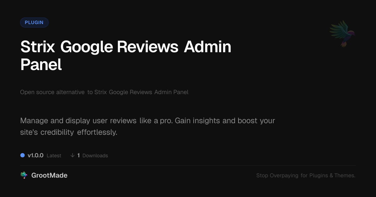 GrootMade is not affiliated with Strix Google Reviews Admin Panel and provides an open-source alternative.