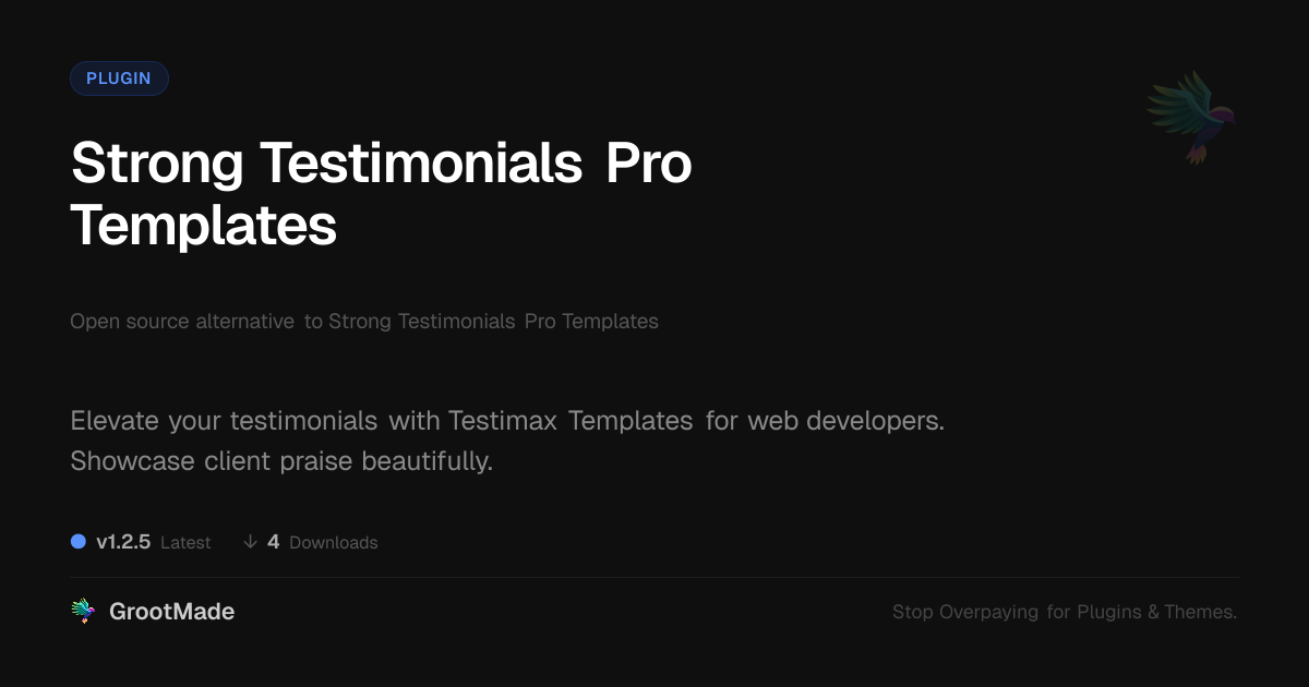 GrootMade is not affiliated with Strong Testimonials Pro Templates and provides an open-source alternative.