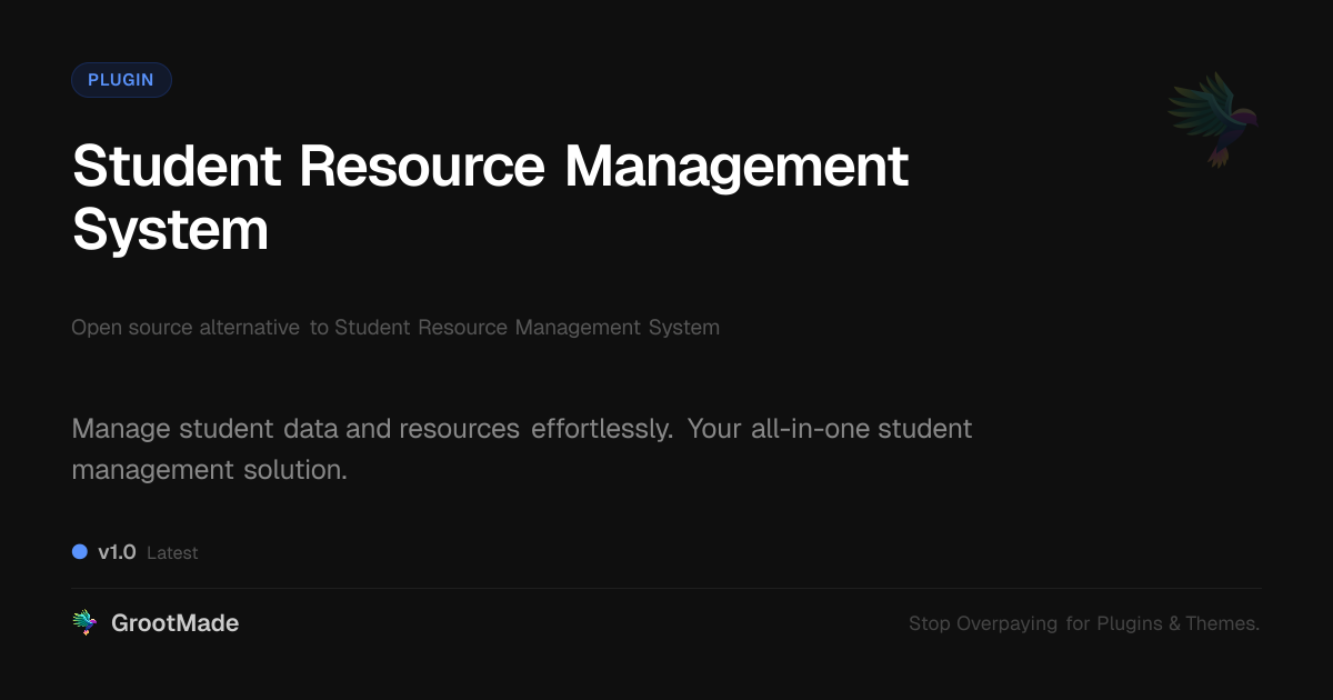 GrootMade is not affiliated with Student Resource Management System and provides an open-source alternative.
