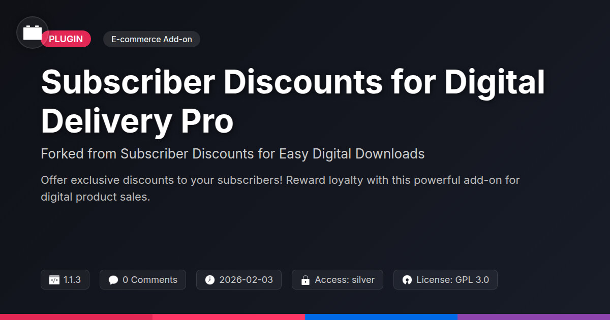 | Forked from | Subscriber Discounts for Easy Digital Downloads |