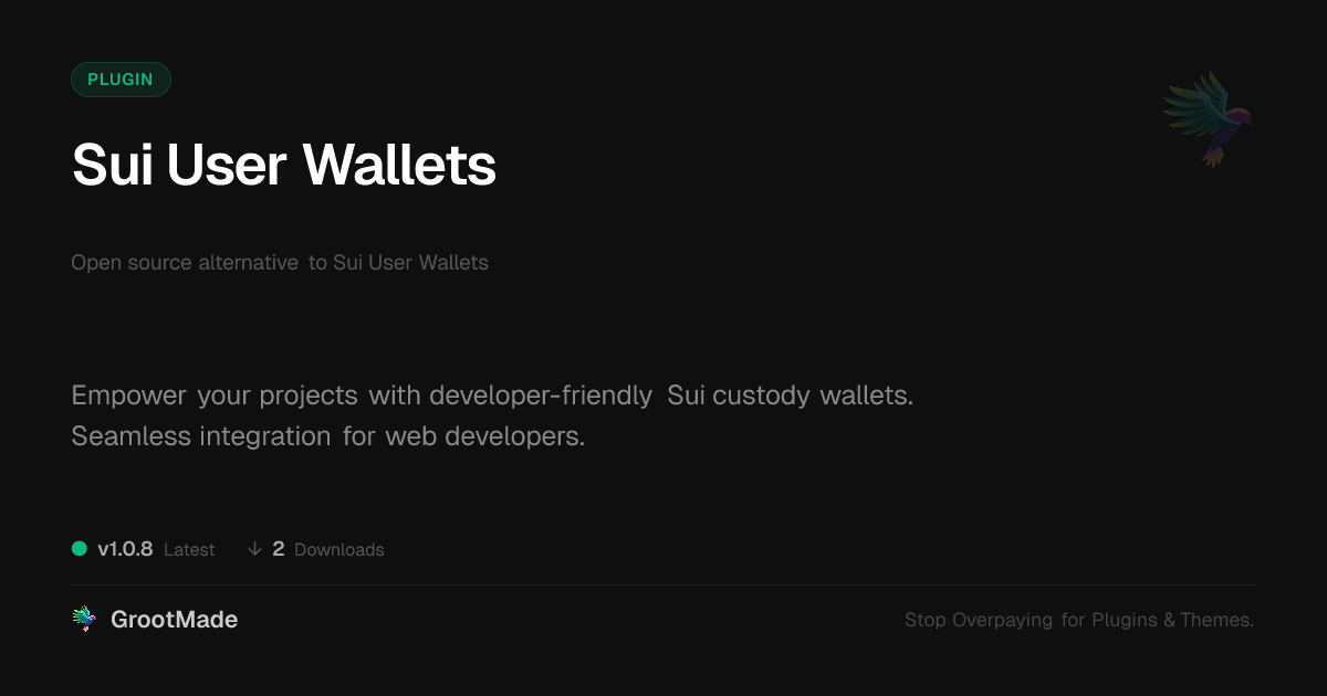 | Tags | Developer crypto wallet, Open source wallet, Sui blockchain development, Sui wallet integration, Web3 wallet tools, search enhancement tool, analytics tracking, content locking plugin, Wallet, Security, Blockchain, Web3, Sui, Custody, Defi, Crypto Wallet, digital assets, Cryptocurrency, publish scheduler, customizable job listings |