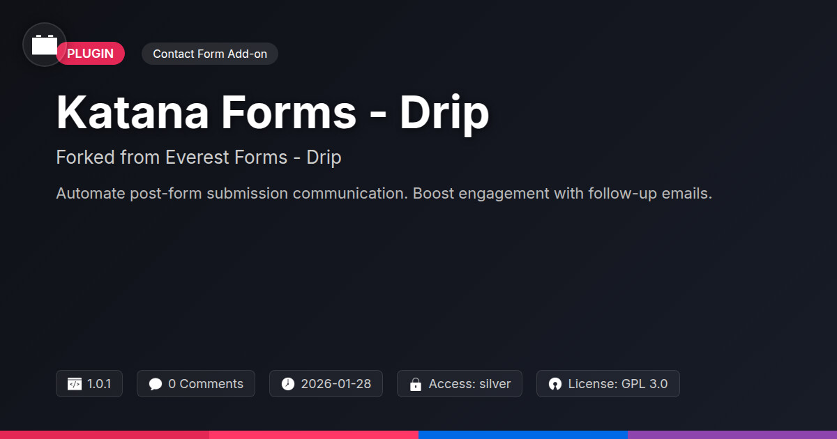 | Tags | crm integration, email marketing, subscription forms, conditional form logic, data delivery automation, drip feed forms, lead nurturing forms, payment status, Drip, lead generation, Newsletter, marketing automation, digital identity control, contact forms, form submission control, clean shop design, pagination addon, profile tab builder, web design utility, form builder, Forms, member communication plugin, user role visibility |