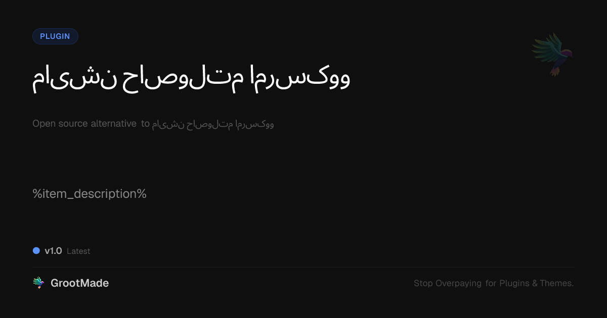 GrootMade is not affiliated with نمایش محصولات ووکامرس and provides an open-source alternative.