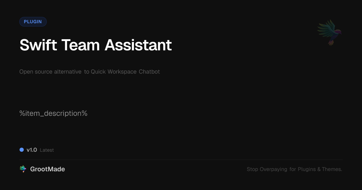 GrootMade is not affiliated with Quick Workspace Chatbot and provides an open-source alternative.