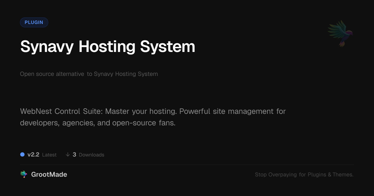 GrootMade is not affiliated with Synavy Hosting System and provides an open-source alternative.