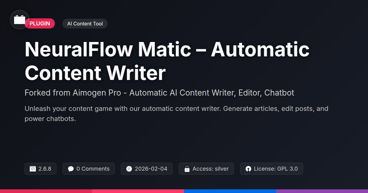 Download it here: Aimogen Pro - Automatic AI Content Writer, Editor, Chatbot & AI Toolkit