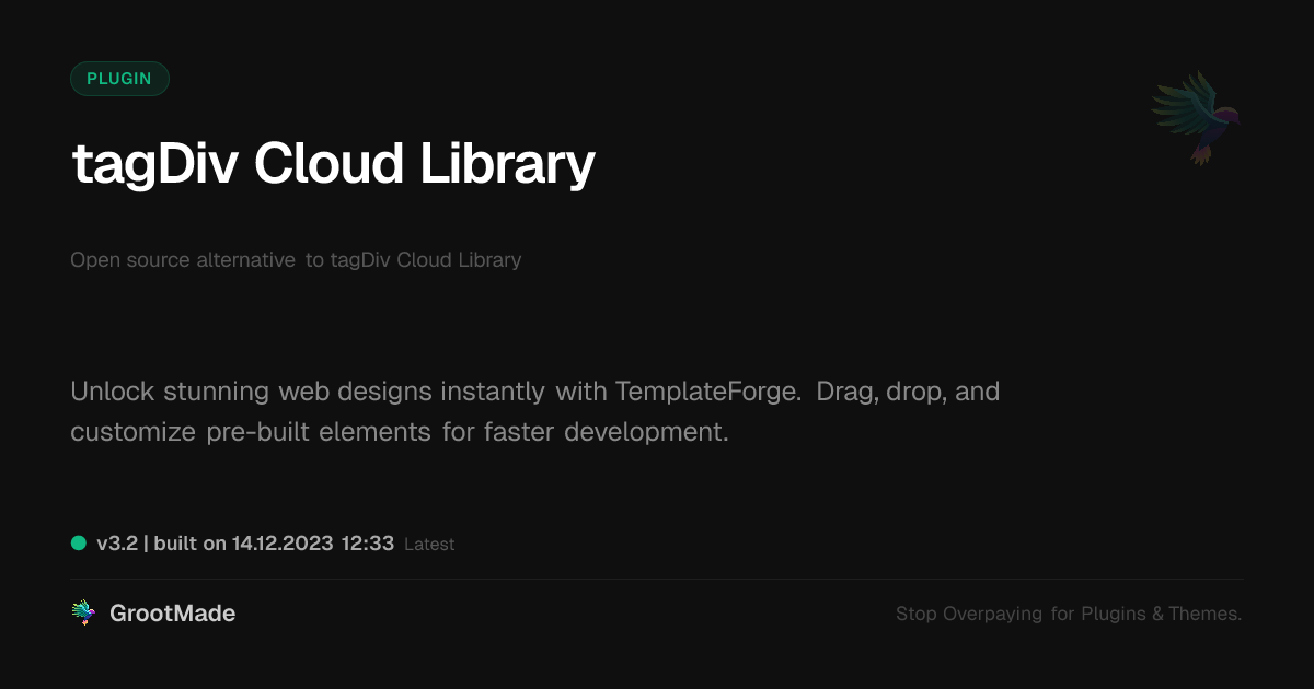 | Tags | content blocks, customization, page templates, website elements, WP community tools, infinite scroll plugin, gallery plugin development, clan website theme, web design library, Design, Developer Tools, Templates, Banking, Financial, Layout, Blocks, Shortcodes, theme builder, Digital Downloads, user role visibility, Frontend, page builder, user contact form, member communication plugin |