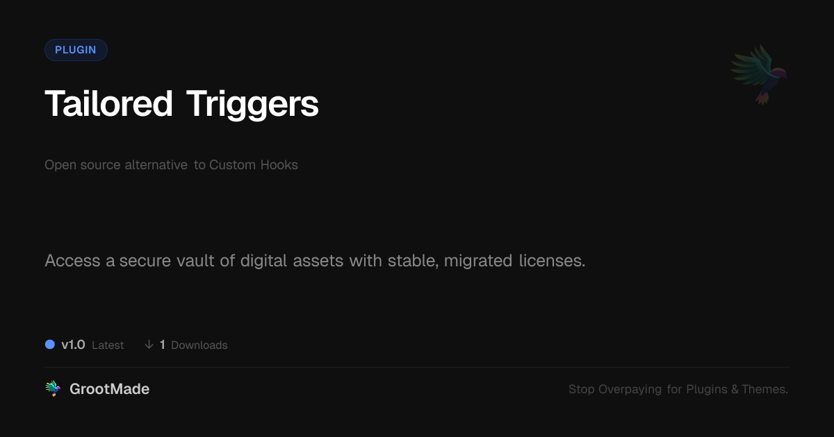 GrootMade is not affiliated with Custom Hooks and provides an open-source alternative.