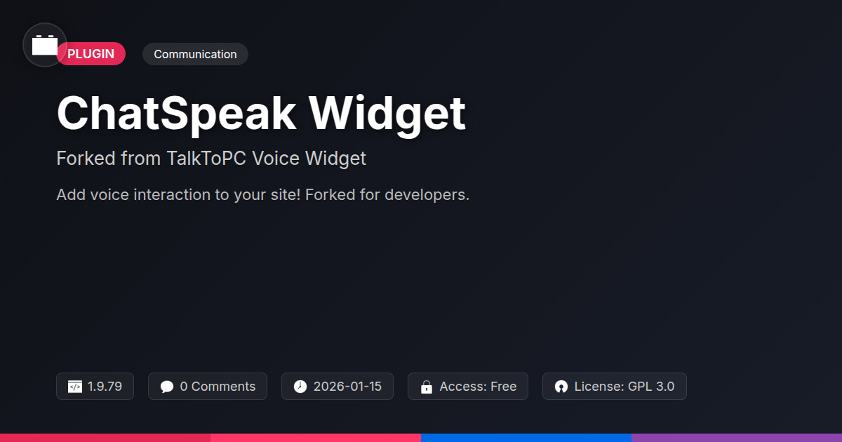 | Tags | accessibility tool, contact form, live chat, spoken content, text to speech plugin, voice widget, website voice, viral content theme, full screen theme, gaming theme, content heavy site, web agency solutions, Social, Communication, Comments, Widget, Real Time, Messaging, Chat, digital identity control, online community safety, profile tab builder, user role visibility, customer support, member communication plugin |