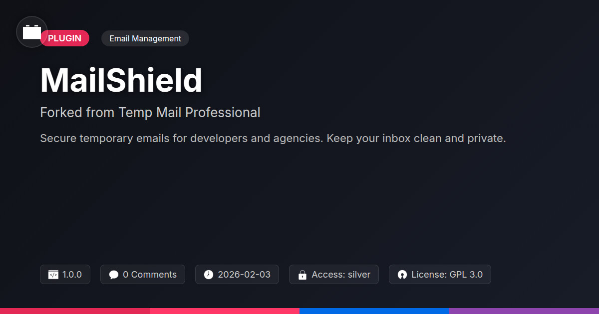 | Tags | spam protection, email management, email filter, temporary email, Security, Email, Protection, Mail, Inbox, Email Security, privacy, Digital Downloads, profile tab builder, Spam, anti-spam, user role visibility, user contact form |