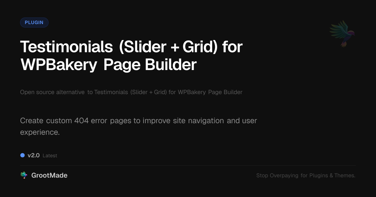 GrootMade is not affiliated with Testimonials (Slider + Grid) for WPBakery Page Builder and provides an open-source alternative.