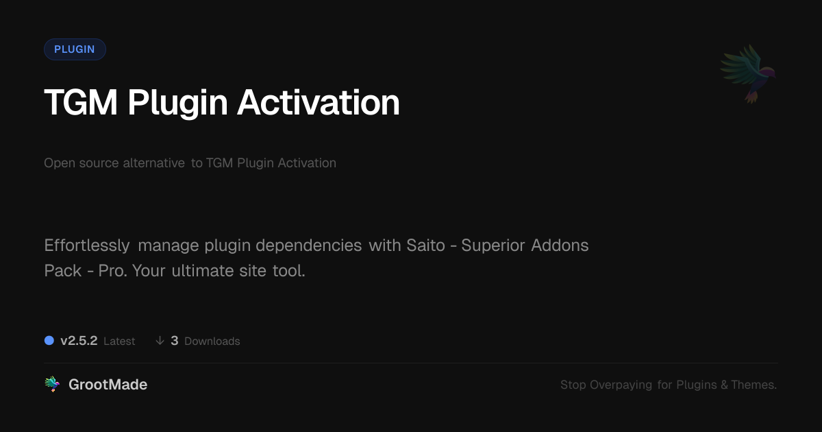 GrootMade is not affiliated with TGM Plugin Activation and provides an open-source alternative.