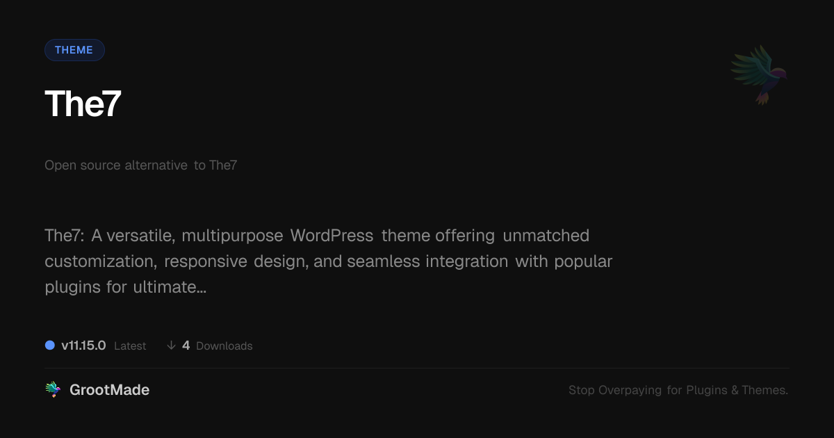 GrootMade is not affiliated with The7 and provides an open-source alternative.