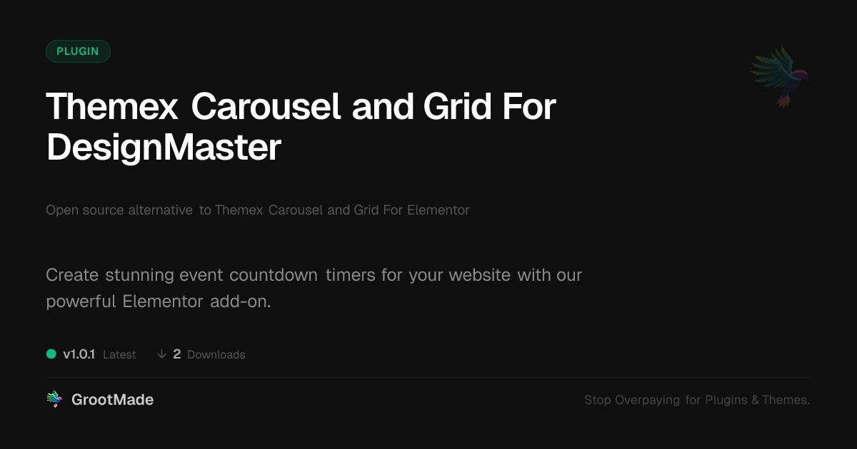 GrootMade is not affiliated with Themex Carousel and Grid For Elementor and provides an open-source alternative.