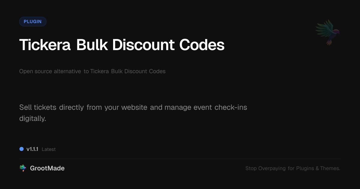 GrootMade is not affiliated with Tickera Bulk Discount Codes and provides an open-source alternative.