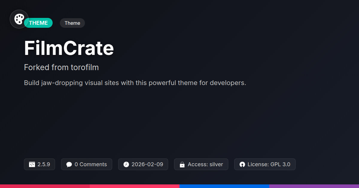 | Tags | showcase, creative agency theme, content showcase theme, responsive portfolio theme, early access software, software beta testing, product likes plugin, visual theme developers, Entertainment, Video, Media, Community Feature, Movies, Film, Cinema, Filmmaker, streaming, online community safety, downloadable product plugin, open source theme, portfolio, WP community tools |