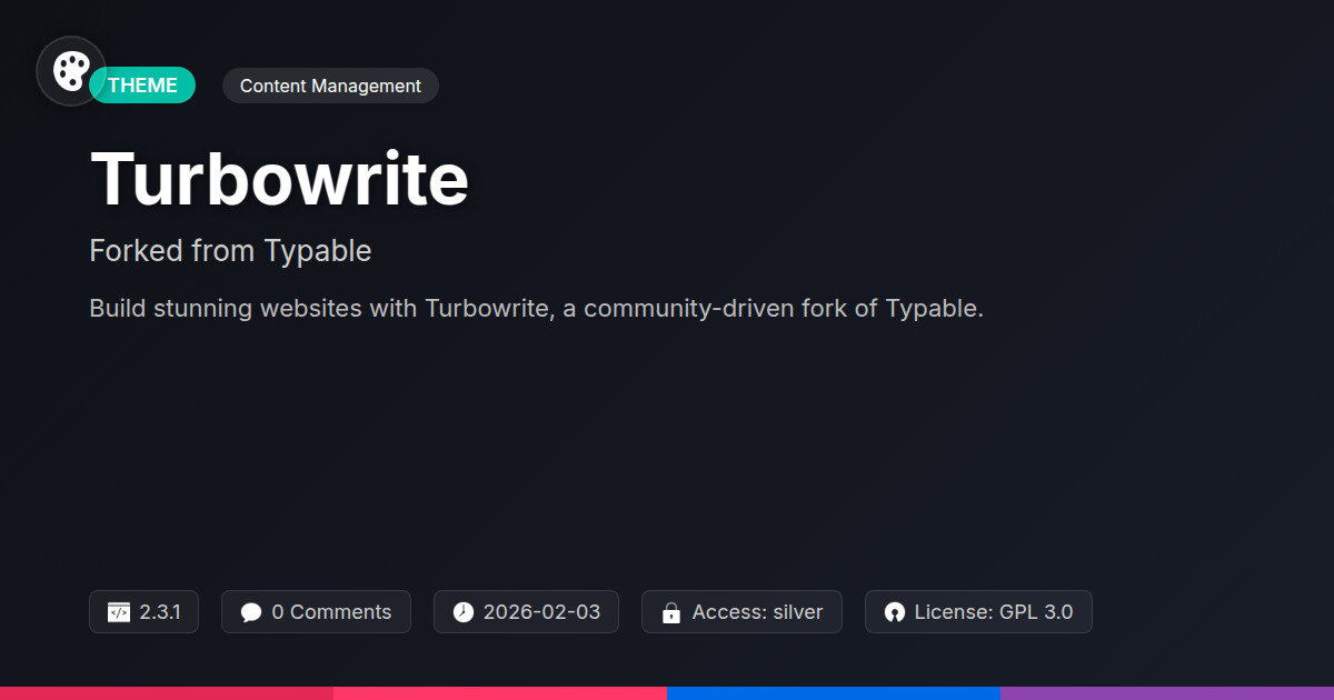 Tags content creation, clean design theme, content focused theme, turbowrite theme, php script repository, Publishing, Writing, developer friendly theme, clean design, typography, recent profile visitors, Readability, member communication plugin, user contact form, Minimalist, blog, Seo Friendly, open source theme, Author Tools
