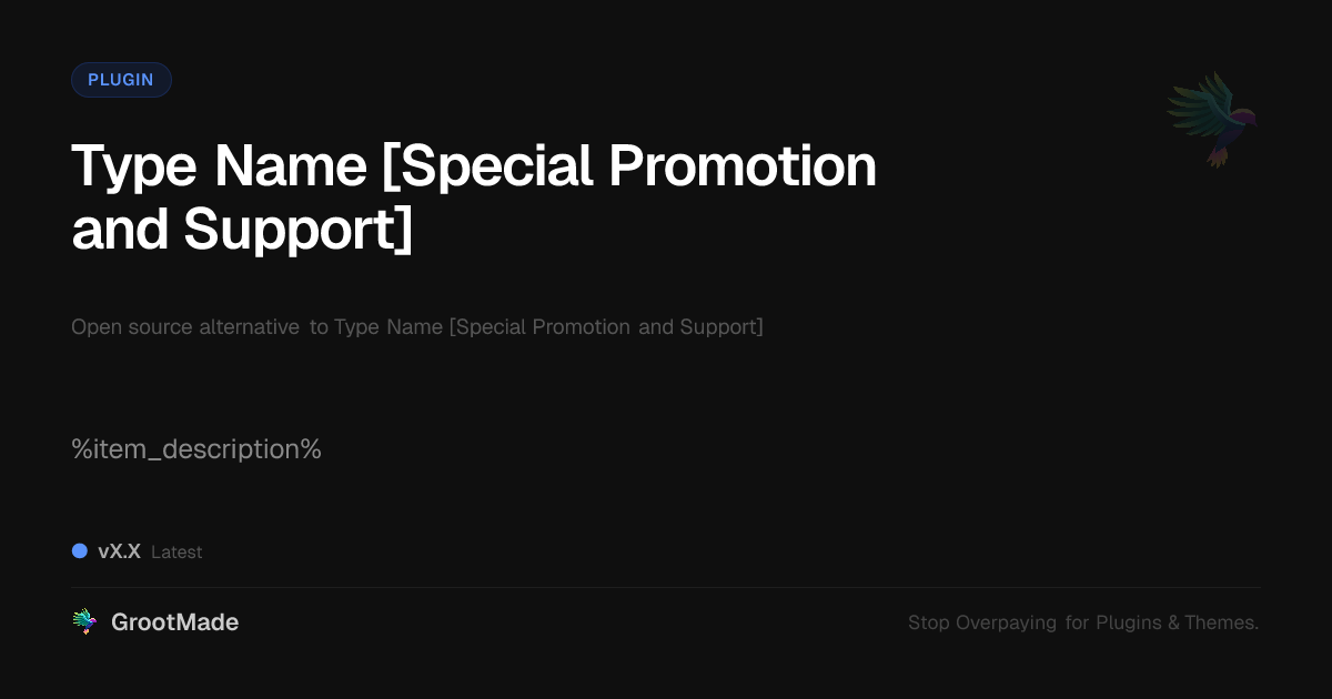 GrootMade is not affiliated with Type Name [Special Promotion and Support] and provides an open-source alternative.