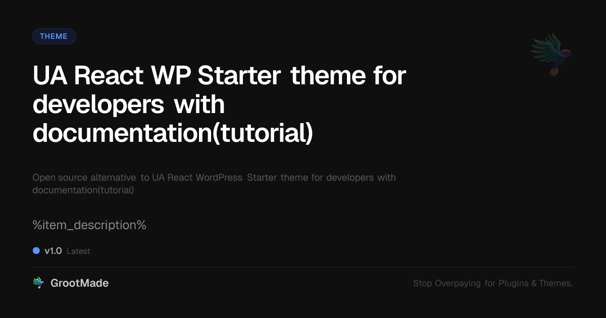 GrootMade is not affiliated with UA React WP Starter theme for developers with documentation(tutorial) and provides an open-source alternative.