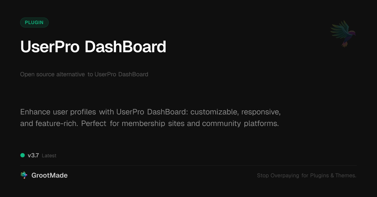 | Forked from | UserPro DashBoard |