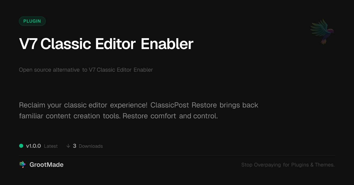 | Forked from | V7 Classic Editor Enabler |