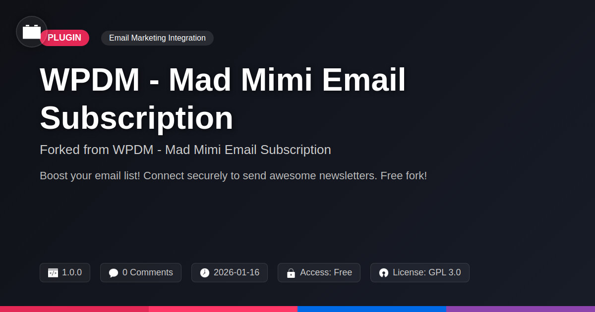 | Forked from | WPDM - Mad Mimi Email Subscription |