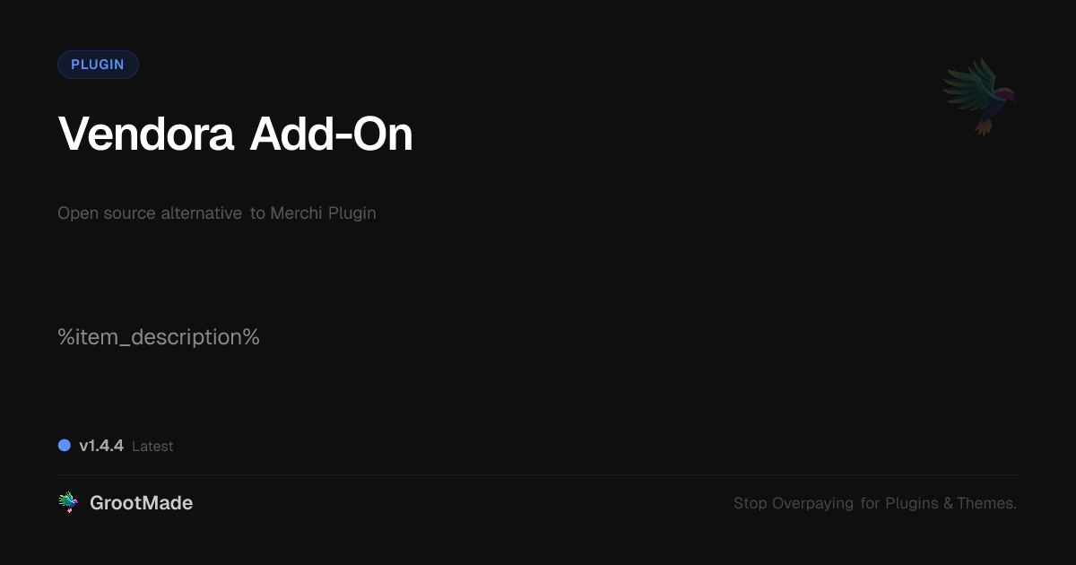 GrootMade is not affiliated with Merchi Plugin and provides an open-source alternative.