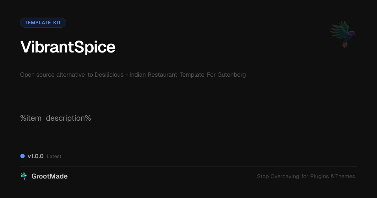 GrootMade is not affiliated with Desilicious - Indian Restaurant Template For Gutenberg and provides an open-source alternative.