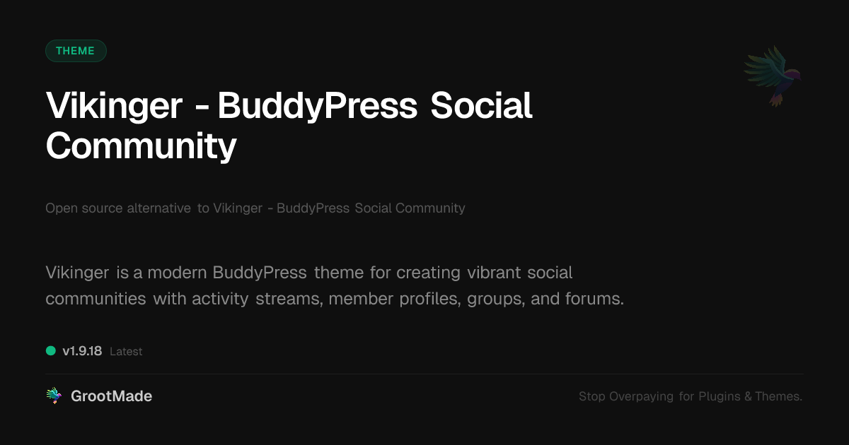 | Tags | Membership, user profiles, forums, community theme, dynamic web elements, seo theme, customizable site builder, media theme, Groups, Networking, Activity Feed, Social Community, online community safety, profile tab builder, film gallery plugin, Buddypress, Messaging, user role visibility |