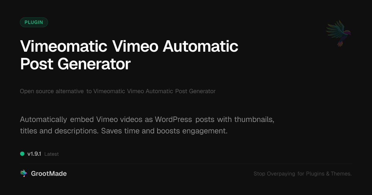 | Forked from | Vimeomatic Vimeo Automatic Post Generator |