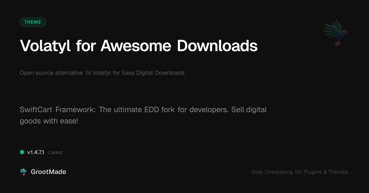 | Tags | ecommerce solution for digital downloads, Storefront, online store, Downloads, product management, open source sales automation, Sales, ecommerce email integration, Payments, digital product sales email, digital product sales plugin, easy digital downloads fork, online store for digital products, developer framework for digital goods, transaction data tool, Ecommerce, Digital Downloads, mailerlite integration plugin, WP theme, Edd, GA4 server-side tracking, online community safety, payment export cli |