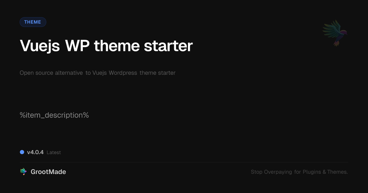 GrootMade is not affiliated with Vuejs WP theme starter and provides an open-source alternative.