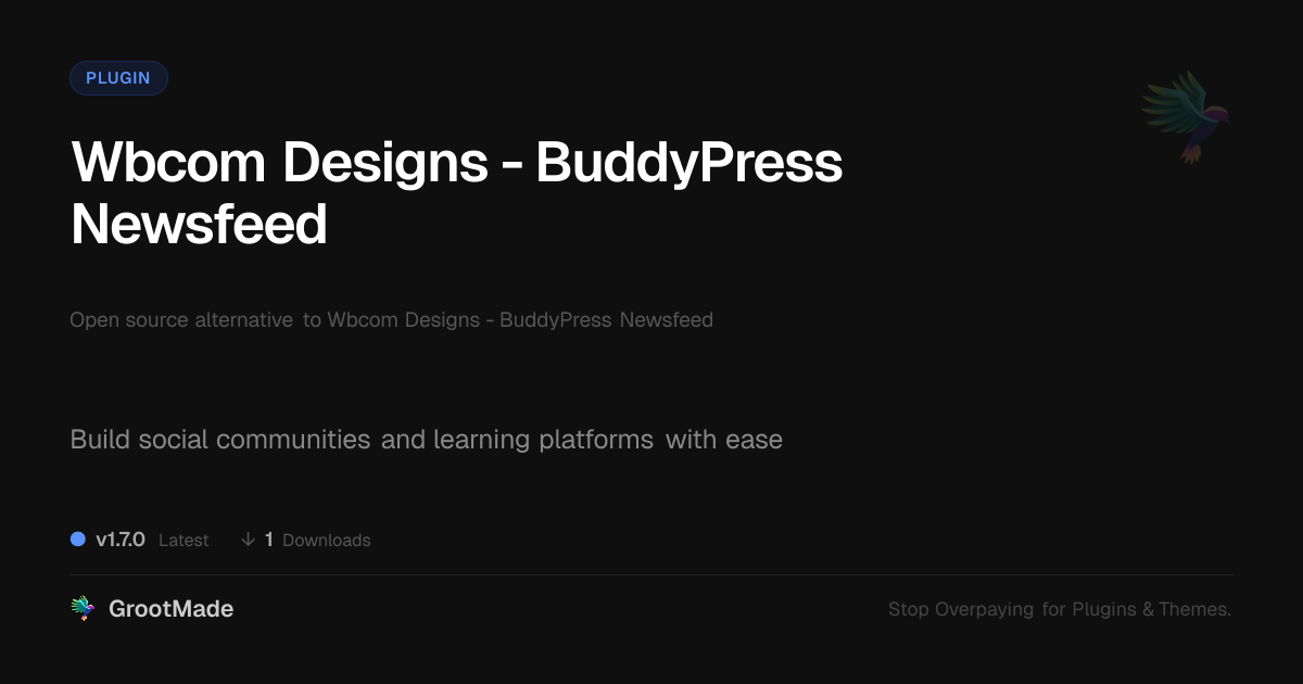 GrootMade is not affiliated with Wbcom Designs - BuddyPress Newsfeed and provides an open-source alternative.