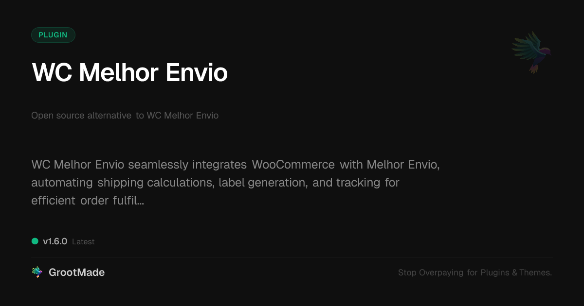 | Tags | shipping rates, open source gallery tool, themed site manager, open source website templates, core functionality plugin, course platform plugin, digital education tool, Shipping, Logistics, Delivery, Orders, Brazil, Melhor Envio, Shipping Labels, product metadata indexing, member profile enhancements, WC, ecommerce, user role visibility |